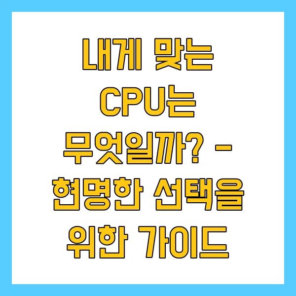 내게 맞는 CPU는 무엇일까? - 현명한 선택을 위한 가이드